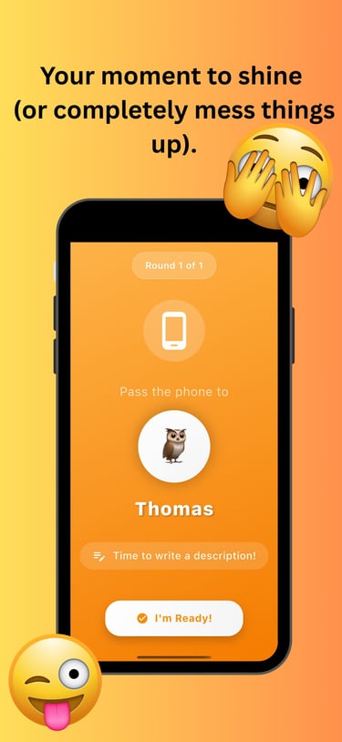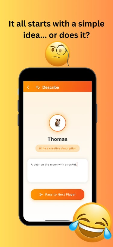 The game is designed for 3 to 20 players, all taking turns on the same device. You can play multiple rounds and watch how the original idea evolves – often in hilarious ways.